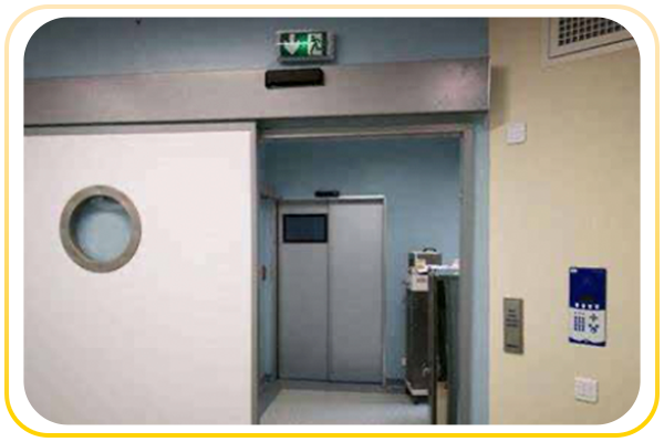 - Puertas automáticas herméticas (Con panel laminado de alta presión, panel de acero con recubri- miento en polvo, panel de acero inoxidable, panel de doble o triple acristalamiento y panel de plomo para salas de rayos x).
